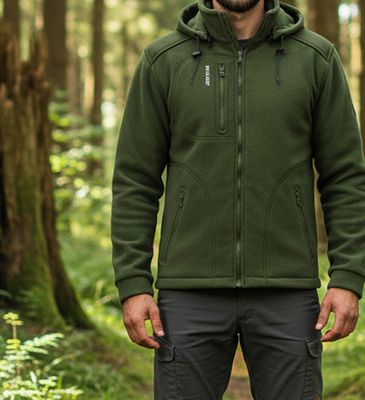 Polar jest gruby i posiada bardzo dobre właściwości cieplne, przyjemny w dotyku, 2 kieszenie zasuwane zamkami błyskawicznymi oraz dodatkowa kieszen na piersi na zamek. Bluza na karku, barkach i łokciach posiada wzmocnienia