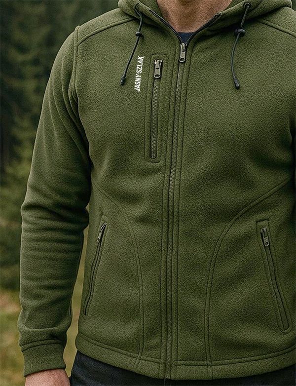 Polar jest gruby i posiada bardzo dobre właściwości cieplne, przyjemny w dotyku, 2 kieszenie zasuwane zamkami błyskawicznymi oraz dodatkowa kieszen na piersi na zamek. Bluza na karku, barkach i łokciach posiada wzmocnienia