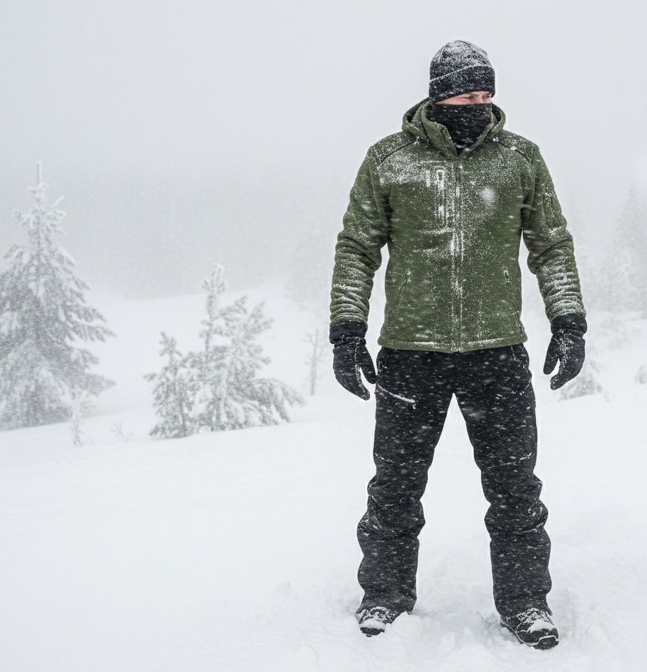 Polar jest gruby i posiada bardzo dobre właściwości cieplne, przyjemny w dotyku, 2 kieszenie zasuwane zamkami błyskawicznymi oraz dodatkowa kieszen na piersi na zamek. Bluza na karku, barkach i łokciach posiada wzmocnienia oraz Odpinany Kaptur