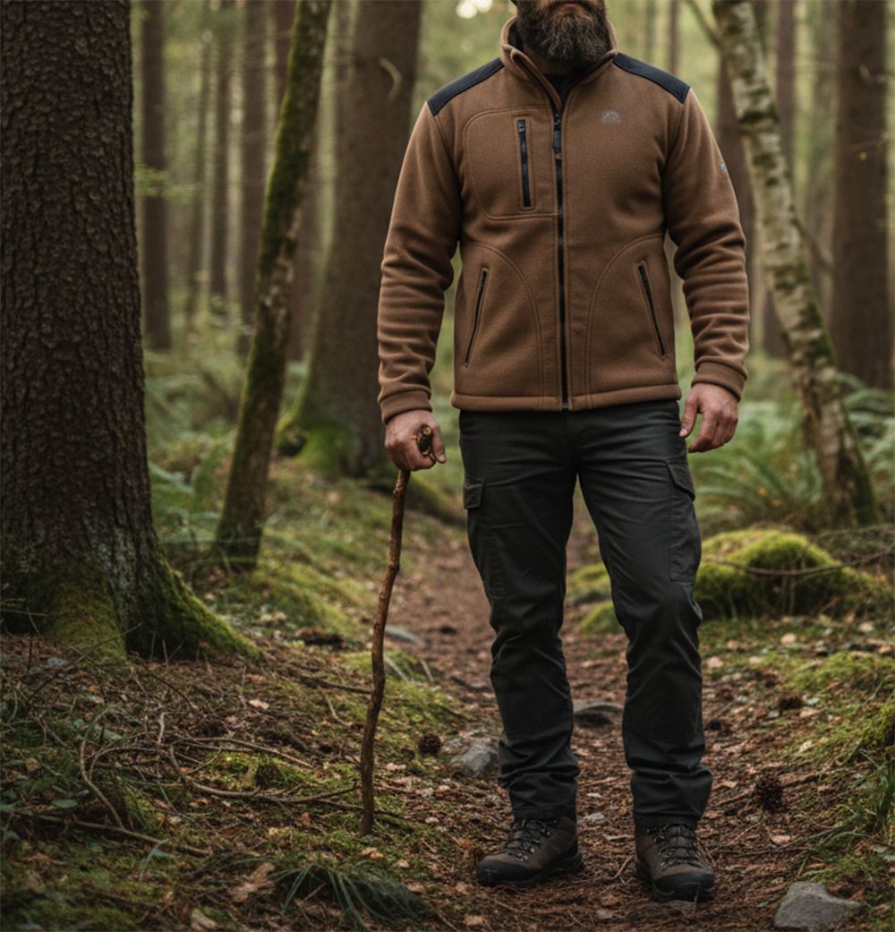 Polar jest gruby i posiada bardzo dobre własciwosci cieplne, przyjemny w dotyku, 2 kieszenie zasuwane zamkami błyskawicznymi oraz dodatkowa kieszen na piersi na zamek. Bluza na karku, barkach i łokciach posiada wzmocnienia.