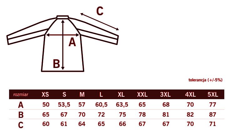 Rozmiary: XS / S / M / L / XL / XXL / 3XL / 4XL / 5XL